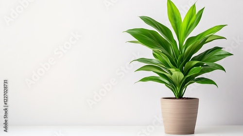 Vibrant Green Dracaena in Brown Pot Against White Wall