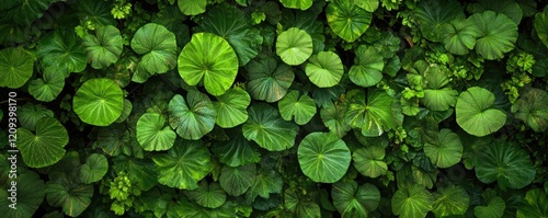 Vibrant green leaves of small-spotted plants, with their unique striped patterns and deep texture, create an enchanting tropical background