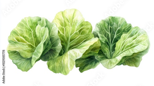 Vibrant green lettuce leaves arranged beautifully, perfect for culinary designs or health-related themes.