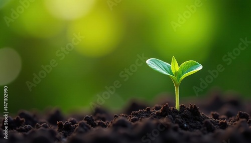 Vibrant green seedling sprouting from rich soil , detail, spring