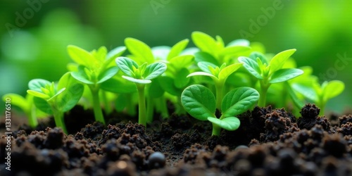 Vibrant Green Seedlings Emerging from Rich Soil, a Symbol of New Life and Growth