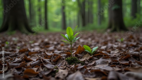 germinating, cypress, leaf, forest floor, grove, nature, growth, new life, botanical, plant, green, brown, contrast, fresh, spring, vibrant, outdoors, serene, tranquil, timberland, regrowth, renewal, rebirth, botany, ground cover, foliage