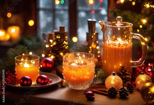 vibrant holiday drinks decorated colorful festive props cheerful celebration atmosphere, cocktails, beverages, mocktails, glassware, ice, citrus, herbs
