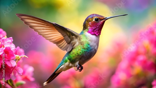 Vibrant Hummingbird in Bloom: A Celebration of Nature's Palette generative AI