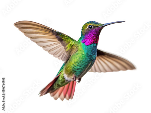 Vibrant hummingbird in flight isolated on transparent background with outstretched wings