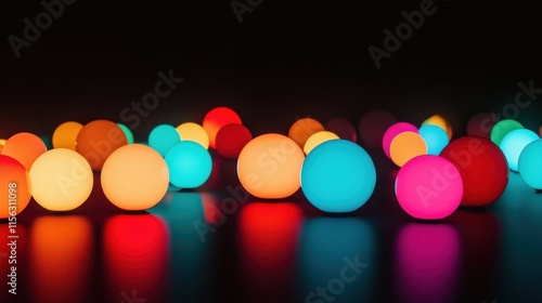 Vibrant Illuminated Spheres Abstract Colorful 3D Render of Glowing Balls on Dark Background