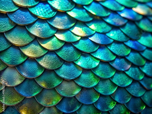 Vibrant iridescent fish scales shimmer in shimmering shades of blue, green, and silver, creating a stunning, intricate, and abstract natural pattern in high-resolution detail.
