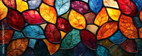 Vibrant Leaf Pattern Stained Glass Texture - Detailed Design for Decorative & Architectural Use