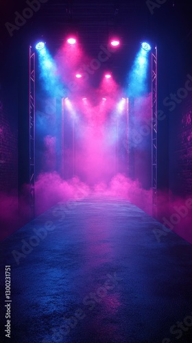 light, fog, pathway, corridor, performance, event, venue, colours, atmosphere, blue, pink, stage, illumination, smoke, dance, entertainment, music, creative, nightlife, technology, laser, beam, ambience, relaxation, excitement, celebration, energy, design, club, modern, colourful, space, hall, illuminated, trendy, aesthetic