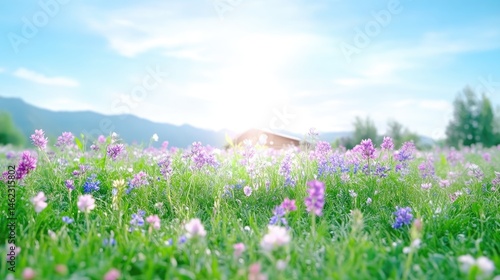 meadow, flower, wildflower, spring, summer, nature, landscape, beautiful, colourful, bloom, vibrant, green, purple, blue, pink, grass, plant, scenic, sunny, sky, cloud, mountain, cabin, peaceful, idylli, rural, countryside, vacation, travel, tour tourism, photo, picnic, hiking, relaxation, garden, exterior, outdoors, beauty, explore, wildflower, field, lush, blooming, gentle, sunlit, fresh, tranquil