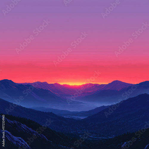 sunrise, mountain, vale, mist, scenic, vista, vibrant, landscape, nature, dawn, sunset, pink, purple, blue, orange, red, sky, cloud, travel, adventure, peace, serenity, calm, inspiration, morning, evening, light, shadow, wilderness, panorama, horizon, peak, ridge, hill, forest, tree, rock, stone, photo, background, wallpaper, desktop, mobile, design, art, abstract, gradient, colours