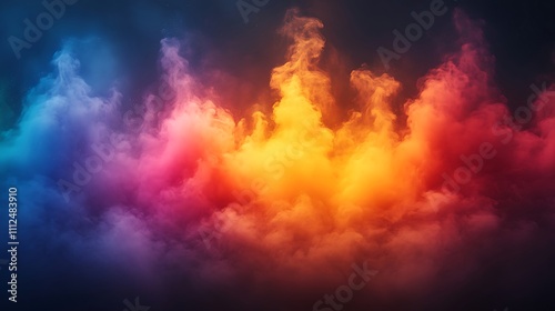 Vibrant multicolored smoke clouds forming abstract shapes against a dark background.
