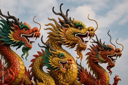 group picture, traditional, collection, decorative, sculpture, creature, mythology, symbolism, colourful, cultural, dinosaur, majestic, mythical, chinese, reptile, vibrant, animal, dragon, ornate, asian, group, photo, image, art, set