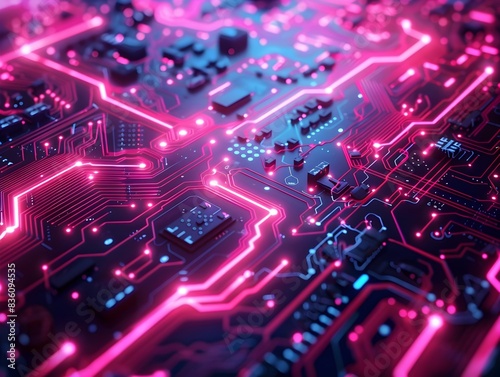 Vibrant Neon Digital Circuits for Cutting Edge Tech and Electronic Product Showcases with Ample Copy Space