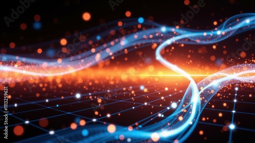 neon, wave, digital, tech, background, energy, light, abstract, dynamic, orange, blue, spark, grid, futuristic, innovation, vibrant, exciting, creative, inspiring, electric, glow, motion, sleek, cutting edge, engaging, awe, wow, dazzling, stunning