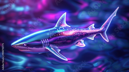 surreal, underwater, virtual, aquatic, glowing, fantasy, futuristic, marin, vibrant, conceptual, shark, artistic, aglow, oceanic, digital artwork, imaginative, digital illustration, dreamlike, science fiction, modern art, graphic design, holographic, marine life, colourful, neon light, deep sea, fantasy art, sea, design