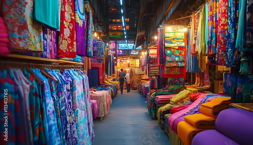 Vibrant Night Market Fabrics, Colorful Asian Street Textile Shop