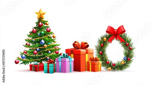 Vibrant of a Festive Holiday with Christmas Tree and Gifts