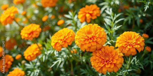 Vibrant orange flowers blooming in a lush green garden, showcasing the beauty of nature's vibrant colors and delicate petals