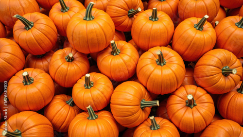 Vibrant orange pumpkins stacked together create festive autumn scene, perfect for seasonal decorations and celebrations