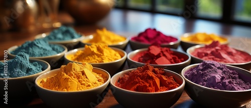 Vibrant Organic Gulal Colors in Bowls for Festive Celebrations