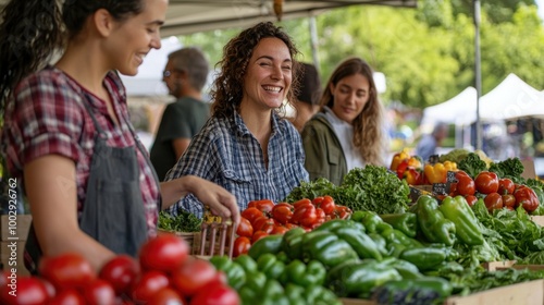 Vibrant Outdoor Farmers Market Stalls with Fresh Organic Produce and Crops