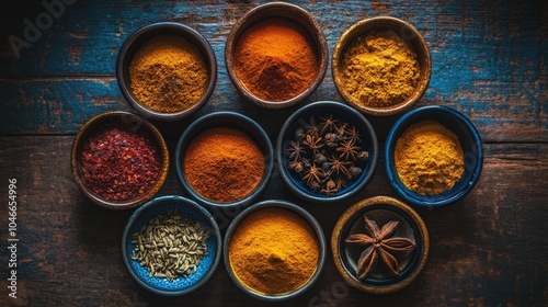 spice, bowl, vibrant, overhead, culinary, colourful, ingredient, cooking, decor, wooden, table, turmeric, paprika, star anise, cinnamon, cumin, fennel, seasoning, aromatic, natural, organic, texture, kitchen, food, preparation, epicure, exotic, assortment, arrangement, cookery, herb, favor, diversity, high-coloured, dry, traditional, international, ethnic, collection, savoury, condiment, appetising