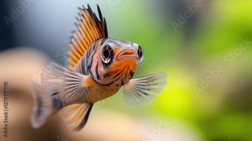 Vibrant paradise fish gliding gracefully in a tranquil aquatic habitat