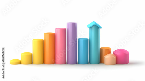 Vibrant Pastel Bar Graph Showing Economic Growth and Statistical Analysis on White Background a Business Concept