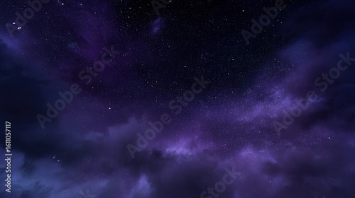 Vibrant photo of purple Galaxy Night Sky with Sparkling Stars and Clouds.