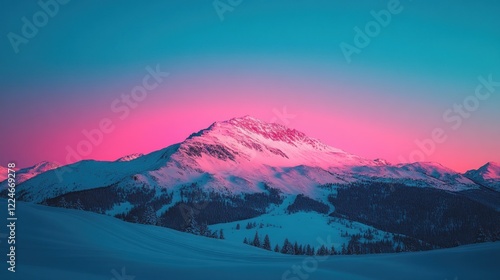 sunset, sunrise, mountain, snow, winter, landscape, scenic, nature, sky, pink, blue, cold, peak, range, alpine, majestic, serene, tranquil, beautiful, vibrant, colours, horizon, cloud, hill, vale, light, shadow, awesome, amazing, spectacular, view, panorama, scene, background, image, photo, photo, travel, adventure, wilderness, glacé, arctic, glacial, summit, ridge
