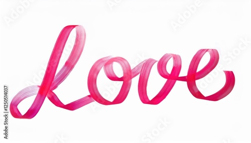 vibrant pink ribbon style strokes forming the word "love" on a clean white background, perfect for romantic designs