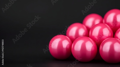Vibrant Pink Snail Eggs on Dark Backdrop with Soft Natural Lighting Reflection