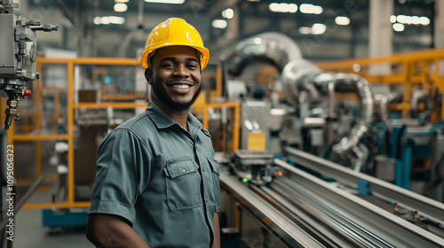 Vibrant Portrait of a Cheerful African American Factory Worker