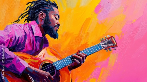 musician, guitar, acoustic, portrait, colourful, art, performance, creativity, talent, sound, music, play, expression, harmony, melody, culture, artistry, inspiration, passion, portraiture, relaxation, joy, emotion, strumming, rythm, beautiful, improvisation, emotion, entertainment, soundwaves, live, vibrant, hand-made, background, skill, enjoyment, solo, bright, colours, character, storytelling, artist, studio, contemporary, action
