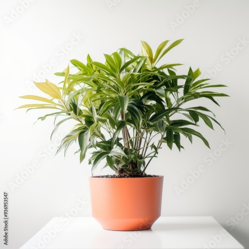 Vibrant Potted Houseplant on White Table with Minimalist Background, Perfect for Home or Office Decor