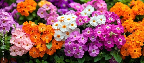 primrose, flower, blossom, spring, floral, garden, plant, bloom, colours, colourful, vibrant, orange, pink, purple, nature, botanical, flora, growth, fresh, springtime, gardening, seasonal, bright, detail, closeup, full frame, horticulture, cultivated, beauty, flowering, foliage, natural, background, flocked, botany, summer, springtime, garden flower, nobody