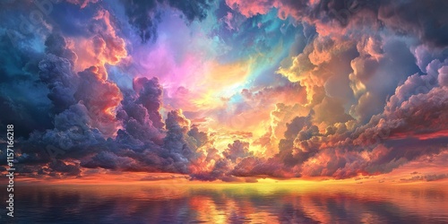 Vibrant rainbow hues emerge in the clouds during a stunning sunset, showcasing the beauty of nature as the sunset casts colorful reflections in the clouds, creating a breathtaking rainbow display.