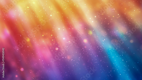 Vibrant rainbow light beams with sparkling bokeh and abstract colorful background