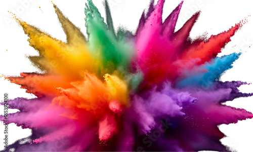Vibrant Rainbow Powder Explosion; Energetic, Festive, Abstract Art; White Background