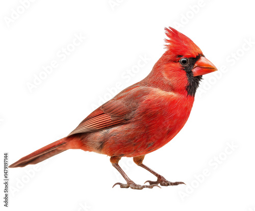 Vibrant red cardinal perched elegantly in natural setting on a transparent background, cut out