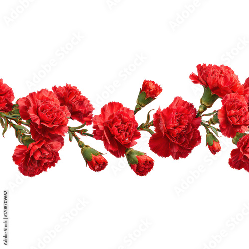 Vibrant red carnations floral arrangement isolated on transparent background