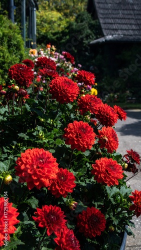 flower, red, garden, nature, bloom, plant, autumn, colourful, bright, beauty, growth, floral, summer, landscape, flower petals, green, leaf, closeup, detail, arrangement, decorative, pattern, vertical