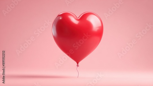 Vibrant Red Heart-Shaped Balloon Floating Against a Soft Pink Background, Perfect for Celebrations of Love, Affection and Romantic Occasions