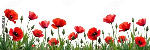 Vibrant red poppies, lush bloom, isolated on white , flora, bouquet, vibrant