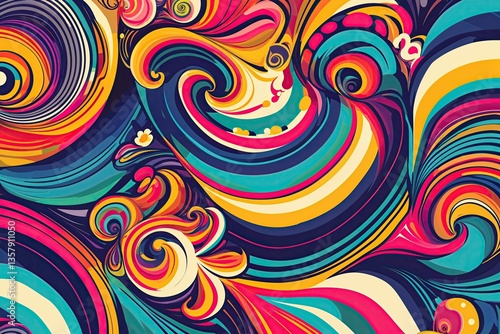 assortment, bright, swirling, geometric, retro, whimsical, print, composition, vibrant, distortion, artwork, artistic, theme, fall, nurturing, joyful, illustration, pride, uplifting, community, harmonious, 70s, nostalgia, fashionable, playful, 60s, colourful, pattern, chic, design, curved, surreal, visual, angle, classic