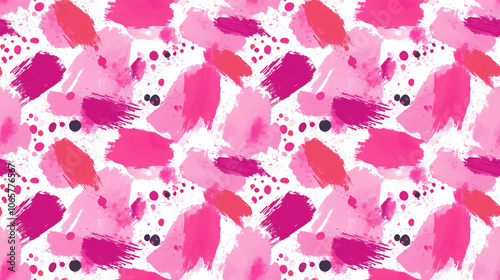 Vibrant seamless pattern featuring abstract pink and magenta elements with ink splatters ideal for textile design and creative projects