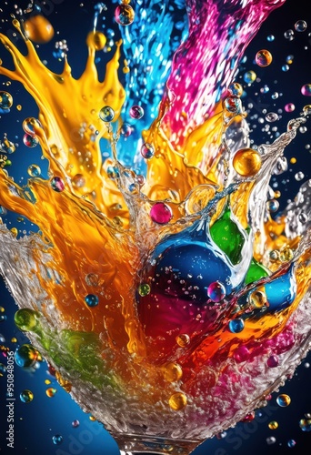 vibrant soda explosion captured dynamic glass display colorful fizz bubbles creating eye catching visual masterpiece, beverage, drink, pop, carbonated