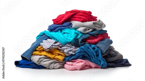 Vibrant stack of clothes on white background. Artificial intelligence image