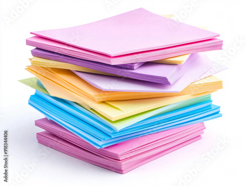 Vibrant Stack of Colorful Post-it Notes on White Background.